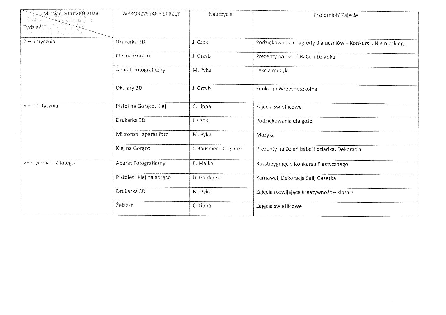 Laboratoria Przyszłości WYKORZYSTANIE SPRZĘTU W STYCZNIU 2024 r. Opublikowano przez @PSP Żyrowa 2024-02-19 Data publikacji: 2024-02-19