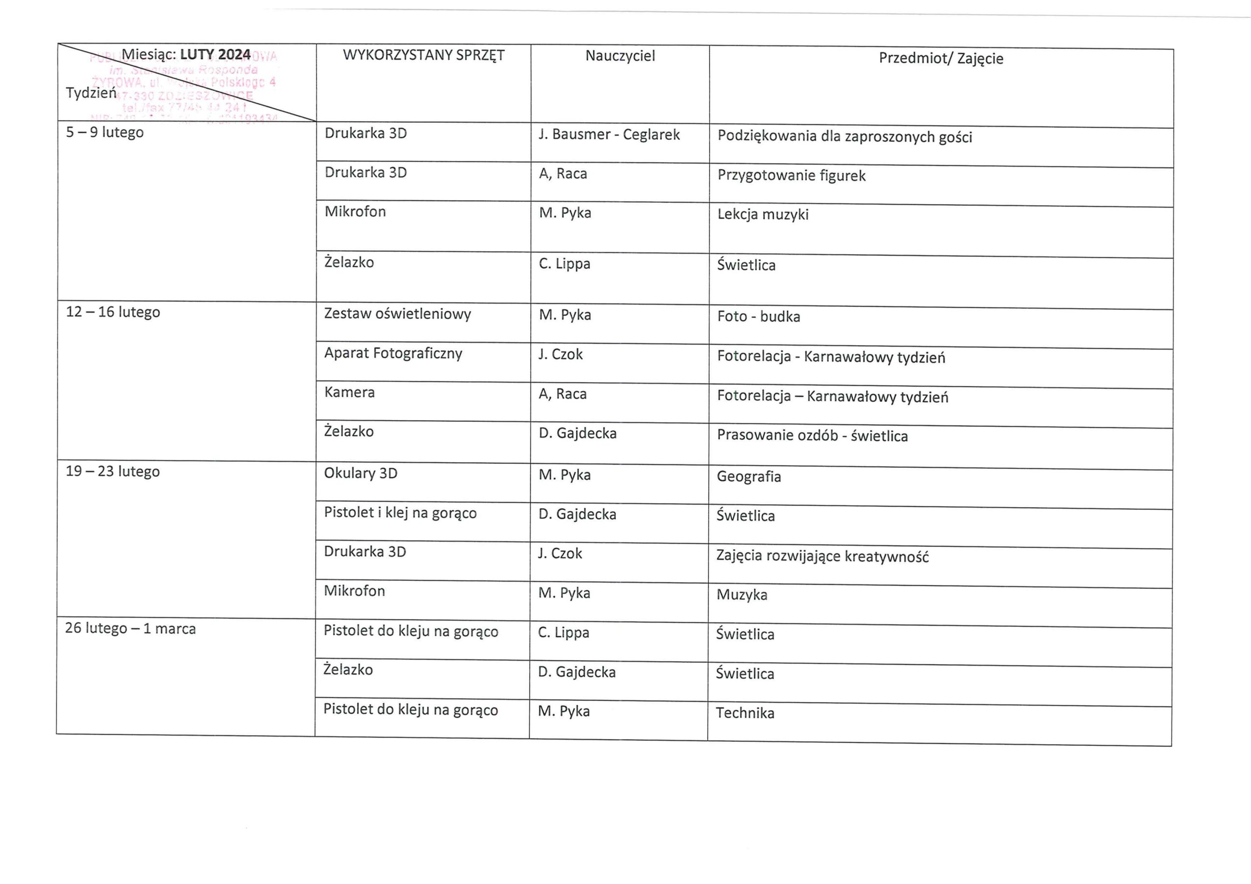 Laboratoria Przyszłości, Rok szkolny 2023/2024 WYKORZYSTANIE SPRZĘTU W LUTYM Opublikowano przez @PSP Żyrowa 2024-03-15 Data publikacji: 2024-03-15