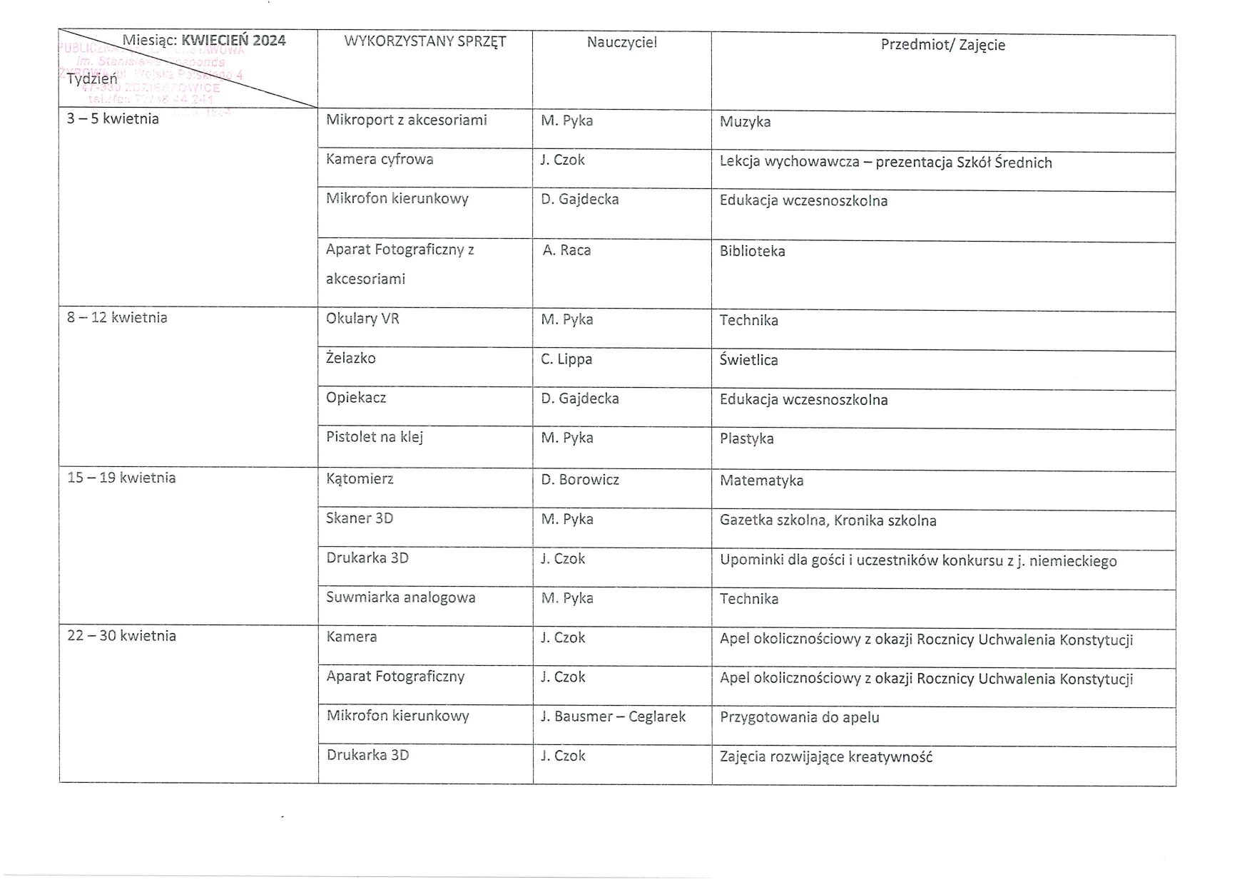Laboratoria Przyszłości WYKORZYSTANY SPRZĘT W KWIETNIU Opublikowano przez @PSP Żyrowa 2024-05-07 Data publikacji: 2024-05-07