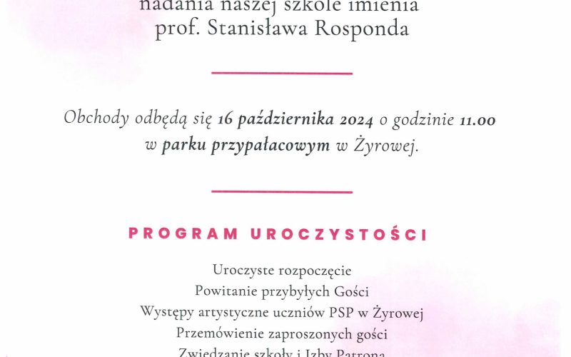 OBCHODY 40-LECIA NADANIA NASZEJ SZKOLE IMIENIA PROF. STANISŁAWA ROSPONDA – 16 października 2024r. FOTORELACJA ( kliknij)