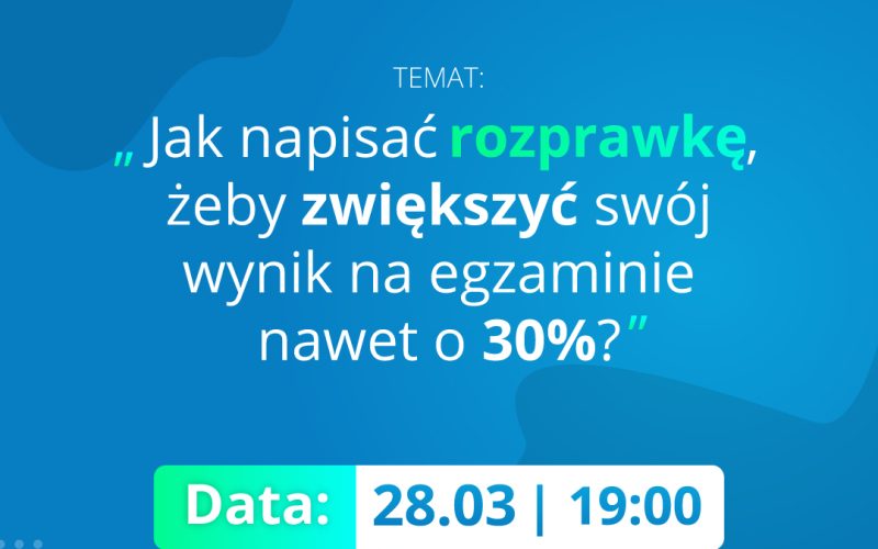 WEBINAR DLA ÓSMOKLASISTÓW Z JĘZYKA POLSKIEGO 28 MARCA O GODZ. 19.00