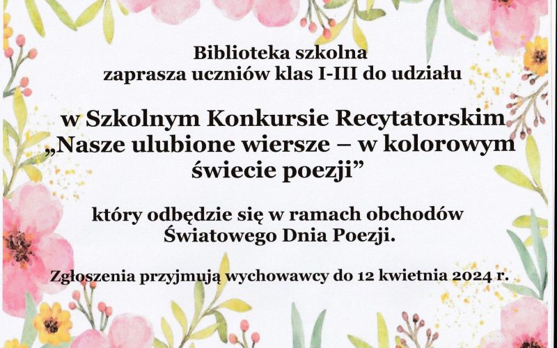 SZKOLNY KONKURS RECYTATORSKI DLA UCZNIÓW KLAS 1 – 3