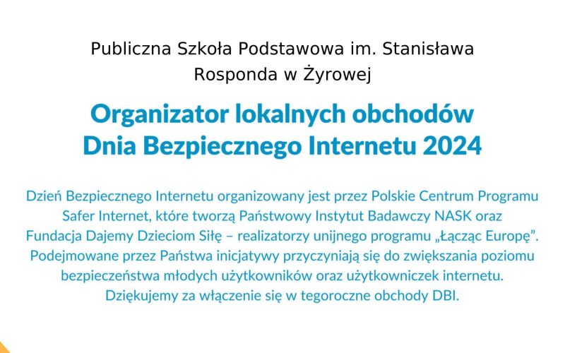 Lekcja na żywo dla uczniów klas I – III pt.: ” Sieciaki – poznaj bezpieczny internet!”- 19.02.2024r. od godz. 8.55 do 9.40 – kontynuacja akcji : ” Wspieramy Dzień Bezpiecznego Internetu 2024″