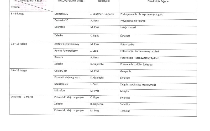 15 mar Laboratoria Przyszłości, Rok szkolny 2023/2024 WYKORZYSTANIE SPRZĘTU W LUTYM Opublikowano przez @PSP Żyrowa 2024-03-15 Czytaj dalej