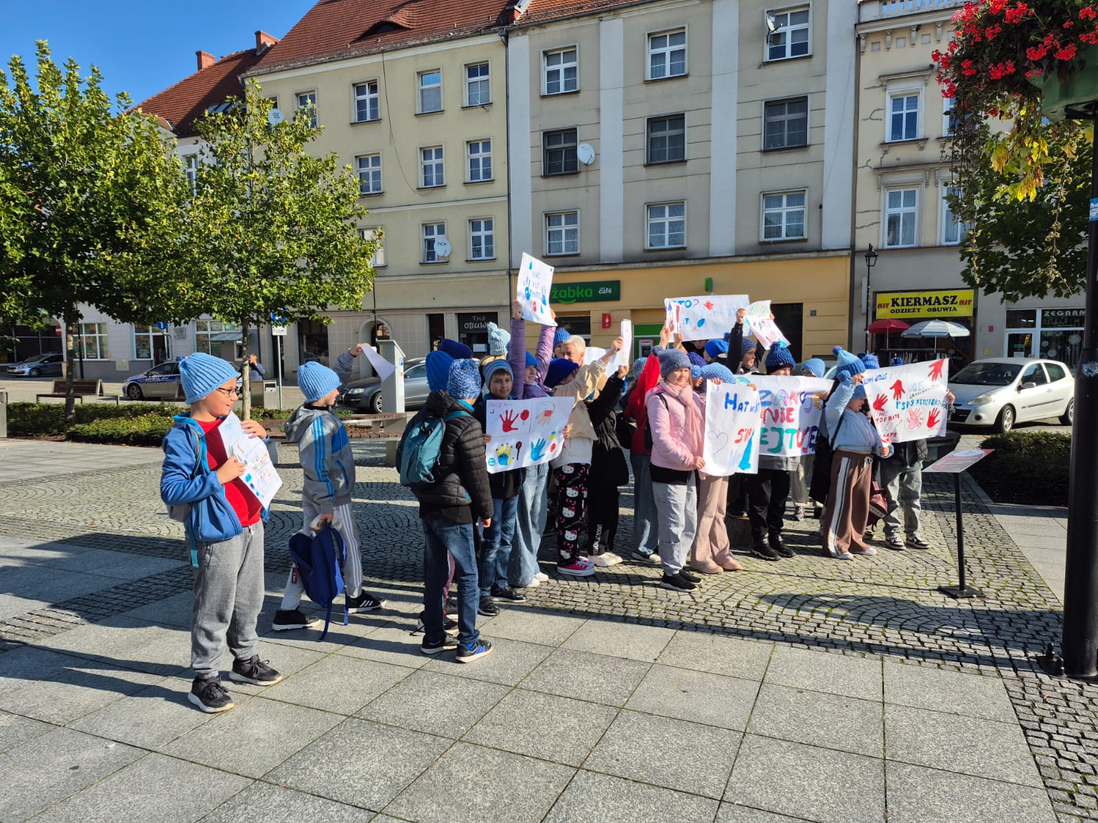 02.10.2025 kozielski rynek wypełnił się uczniami szkół podstawowych i ponadpodstawowych, ubranych w niebieskie czapki, by wspólnie zademonstrować swój sprzeciw wobec hejtu i przemocy. Inicjatorem spotkania była kędzierzyńska Fundacja dla Pokoju, w ramach projektu HatNotHate, w którym już od roku uczestniczy też nasza szkoła. Uczennicom zaangażowanym w akcję towarzyszyli opiekunowie : Pani dyrektor Katarzyna Jajuga oraz Pani Aleksandra Mateja. Spotkanie stało się okazją do przypomnienia, jak istotne jest reagowanie na przemoc, jak ważna jest empatia i wzajemny szacunek. Wysłuchaliśmy przemówienia Pani prezydent miasta Kędzierzyna – Koźla, Sabiny Nowosielskiej, która objęła tegoroczny marsz swoim patronatem. Było to ciekawe spotkanie.