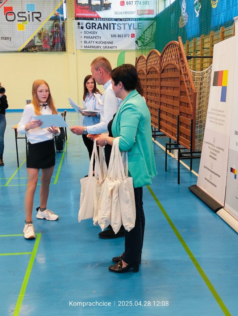 28 kwietnia 4 uczniów Amelia Kulpok i Zuzanna Smiatek z klasy IV, Karolina Hanko z kl.VII oraz Marcin Kilisz z kl.VIII reprezentowali naszą Szkołę w Finale konkursu Wiedzy o Mniejszości Niemieckiej organizowanego przez Towarzystwo Społeczno-Kulturalne Niemców, a finansowanego przez Ministerstwo Spraw Wewnętrznych i Administracji.