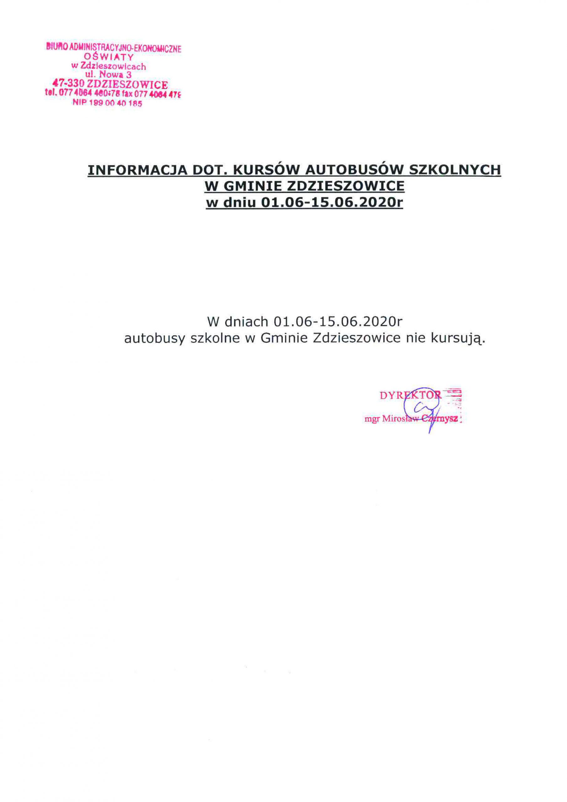 Aktualności, Aktualności uczniowskie KURSY AUTOBUSÓW SZKOLNYCH W DNIACH 01-15.06.2020 r. Opublikowano przez @PSP Żyrowa 2020-05-29 Data publikacji: 2020-05-29