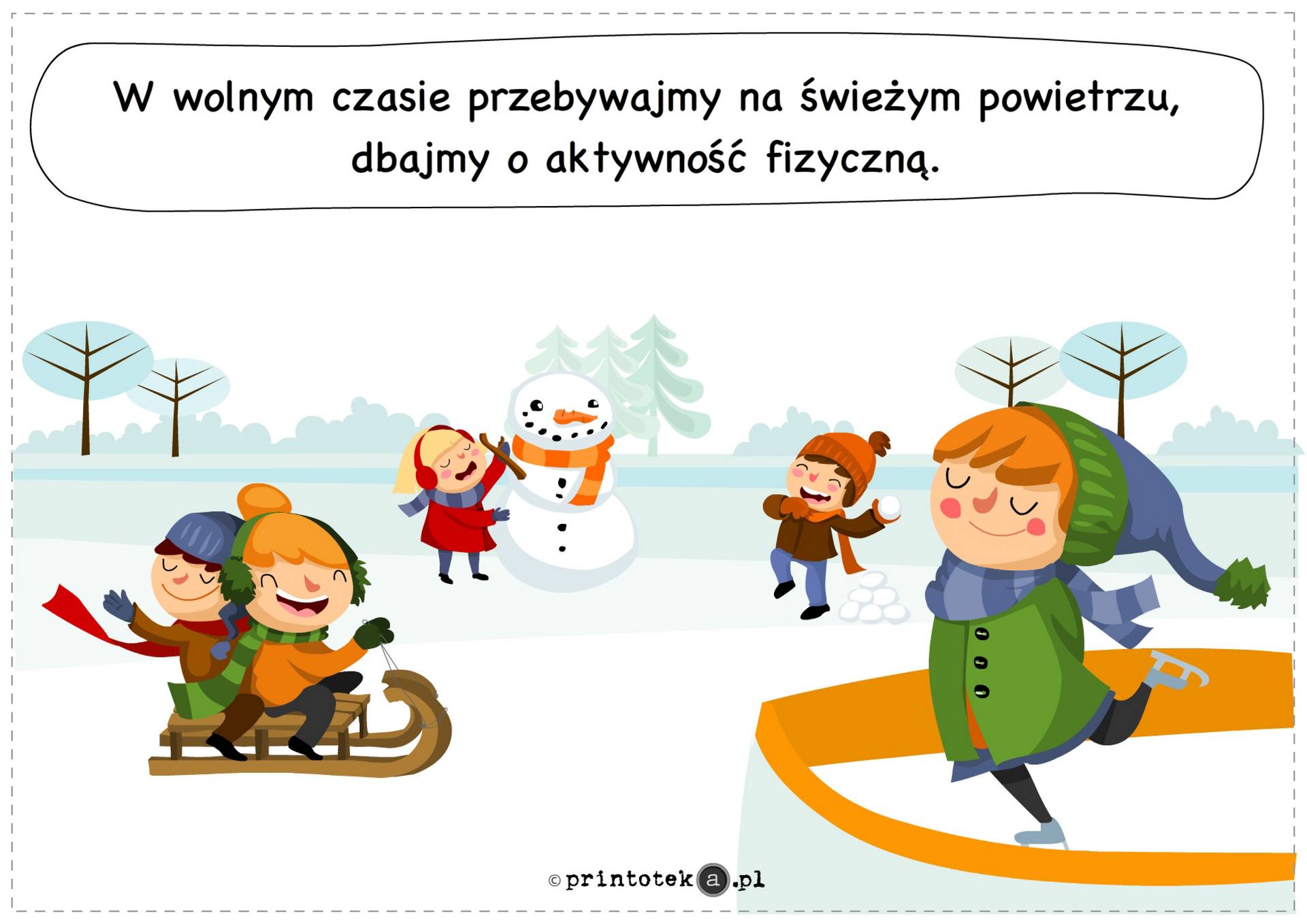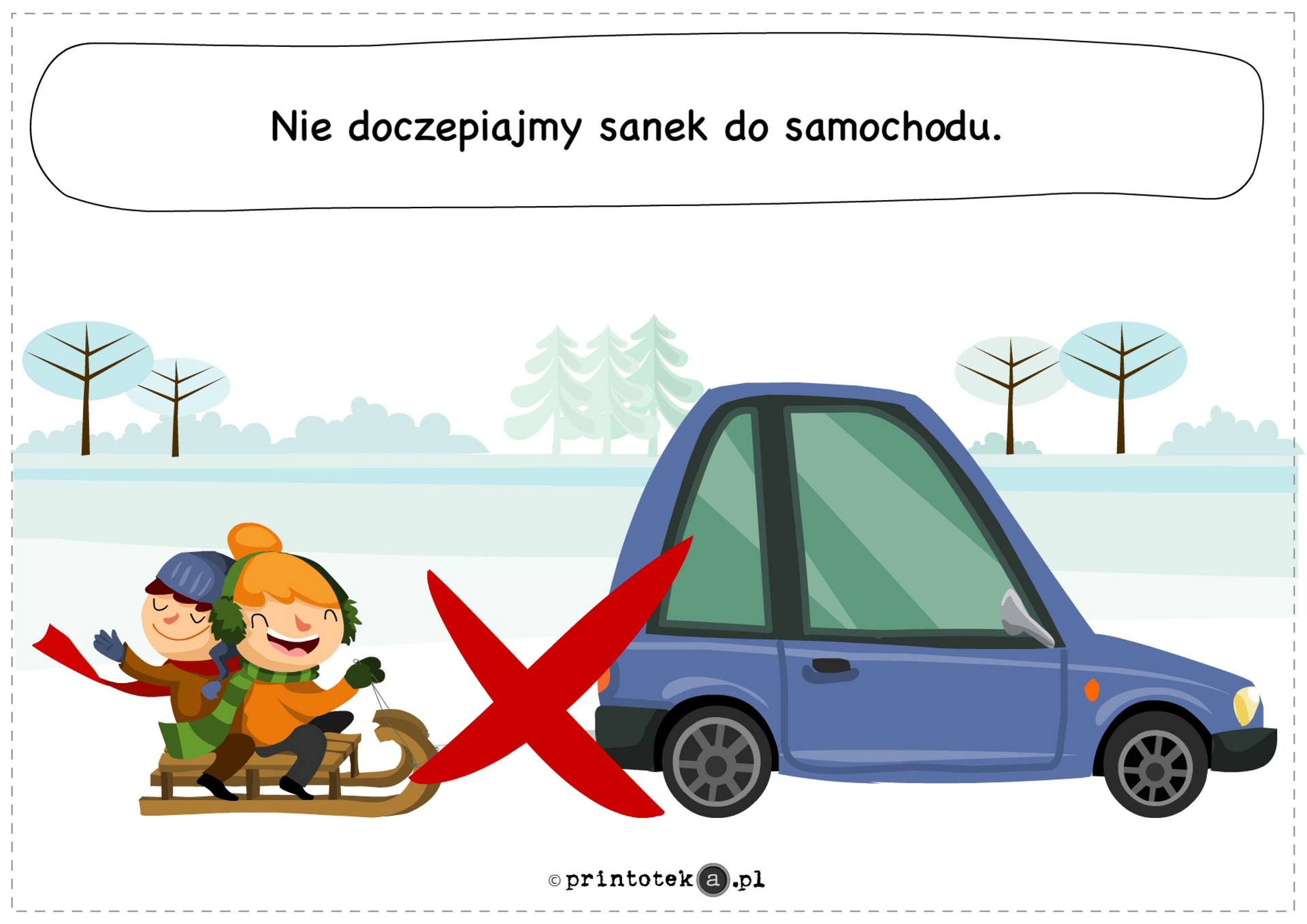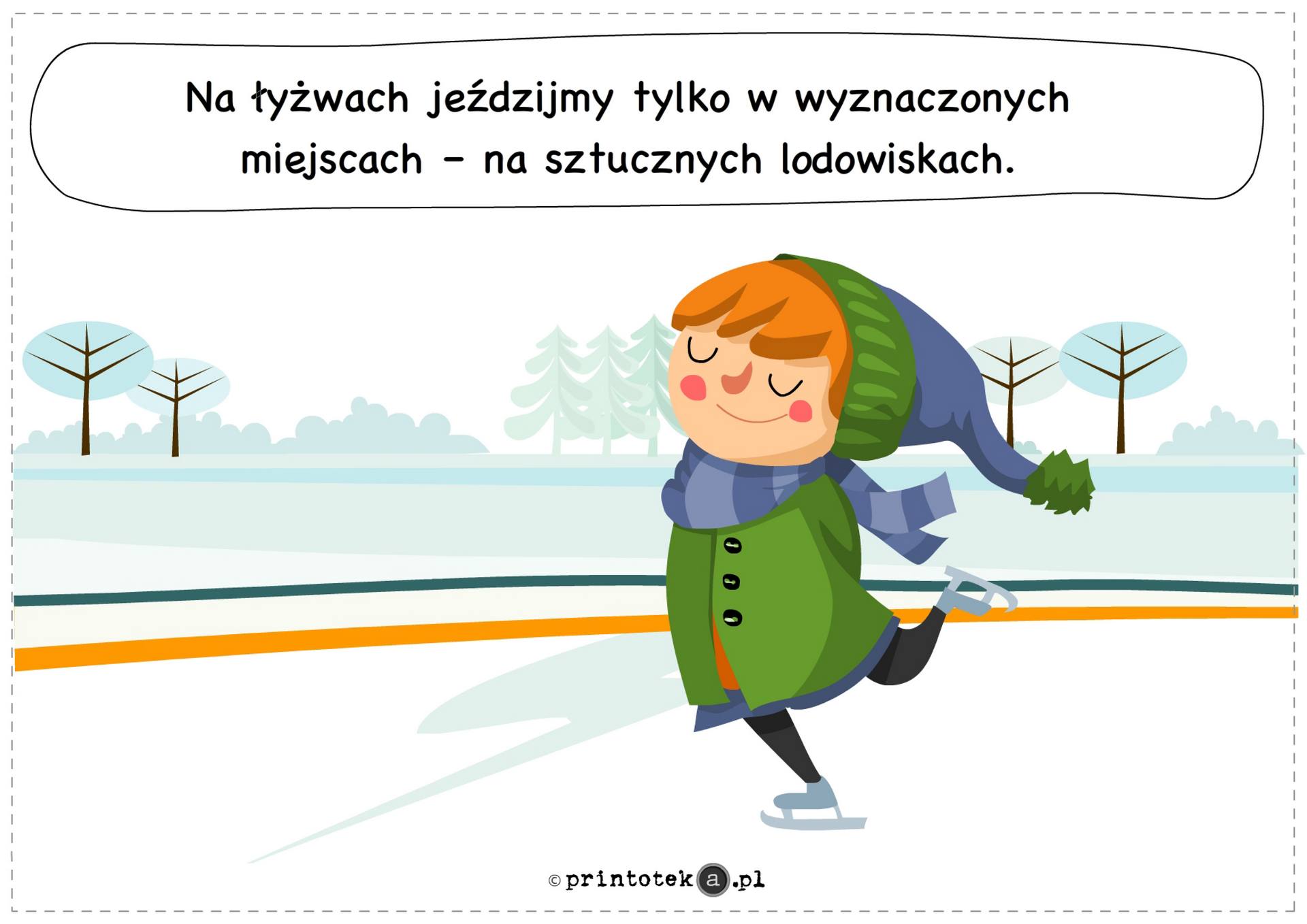 Zabawy na śniegu i lodzie powinny odbywać się wyłącznie w miejscach do tego przeznaczonych i pod nadzorem dorosłych. Zjazdy na sankach należy organizować z dala od jezdni i zbiorników wodnych, a jazda na łyżwach powinna odbywać się jedynie na sztucznych lodowiskach. Przypomina się również o bezwzględnym zakazie doczepiania sanek do pojazdów mechanicznych.