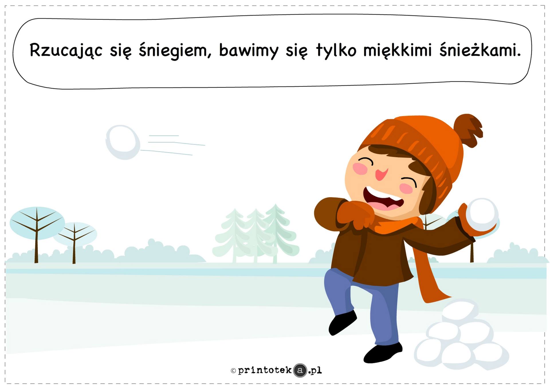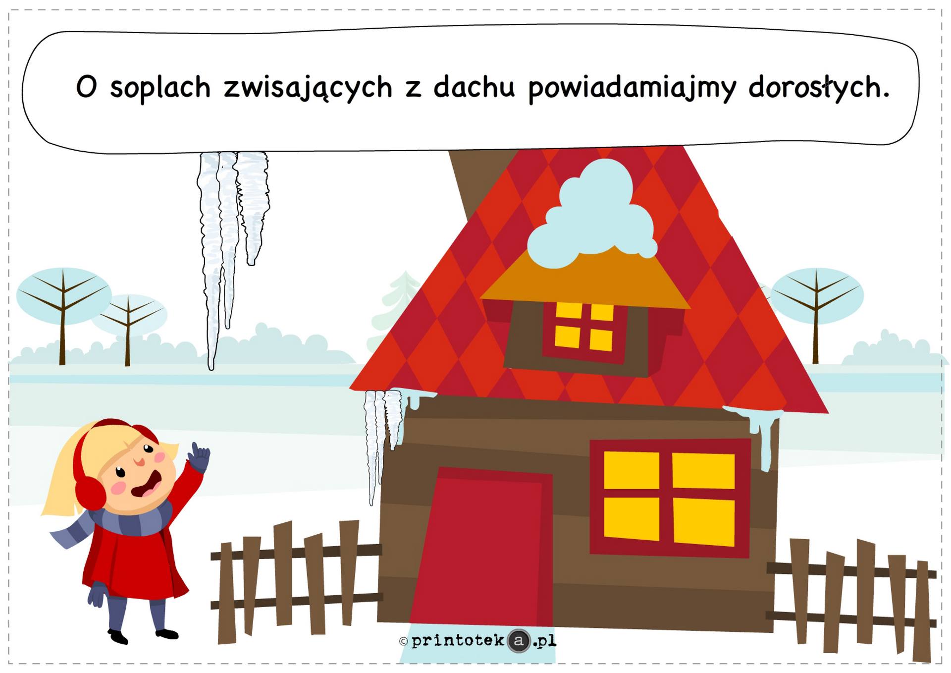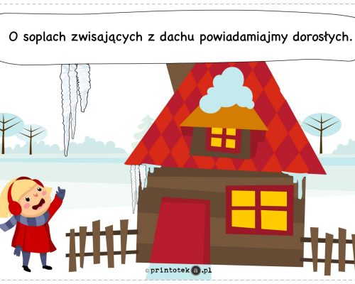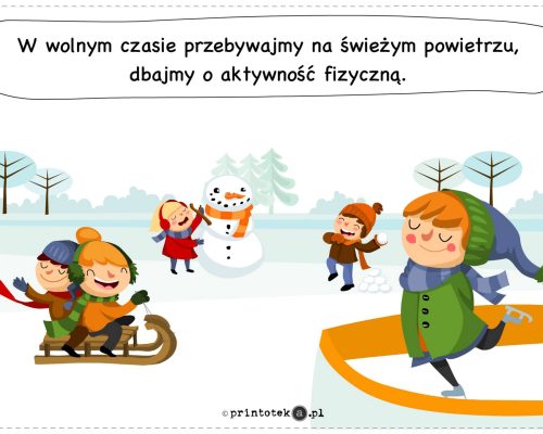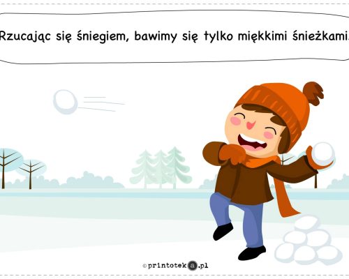 Podczas zimowych aktywności zaleca się zachowanie bezpiecznych odległości między uczestnikami zabaw, używanie wyłącznie miękkich śnieżek oraz zgłaszanie osobom dorosłym wszelkich zauważonych zagrożeń, w szczególności sopli zwisających z dachów.