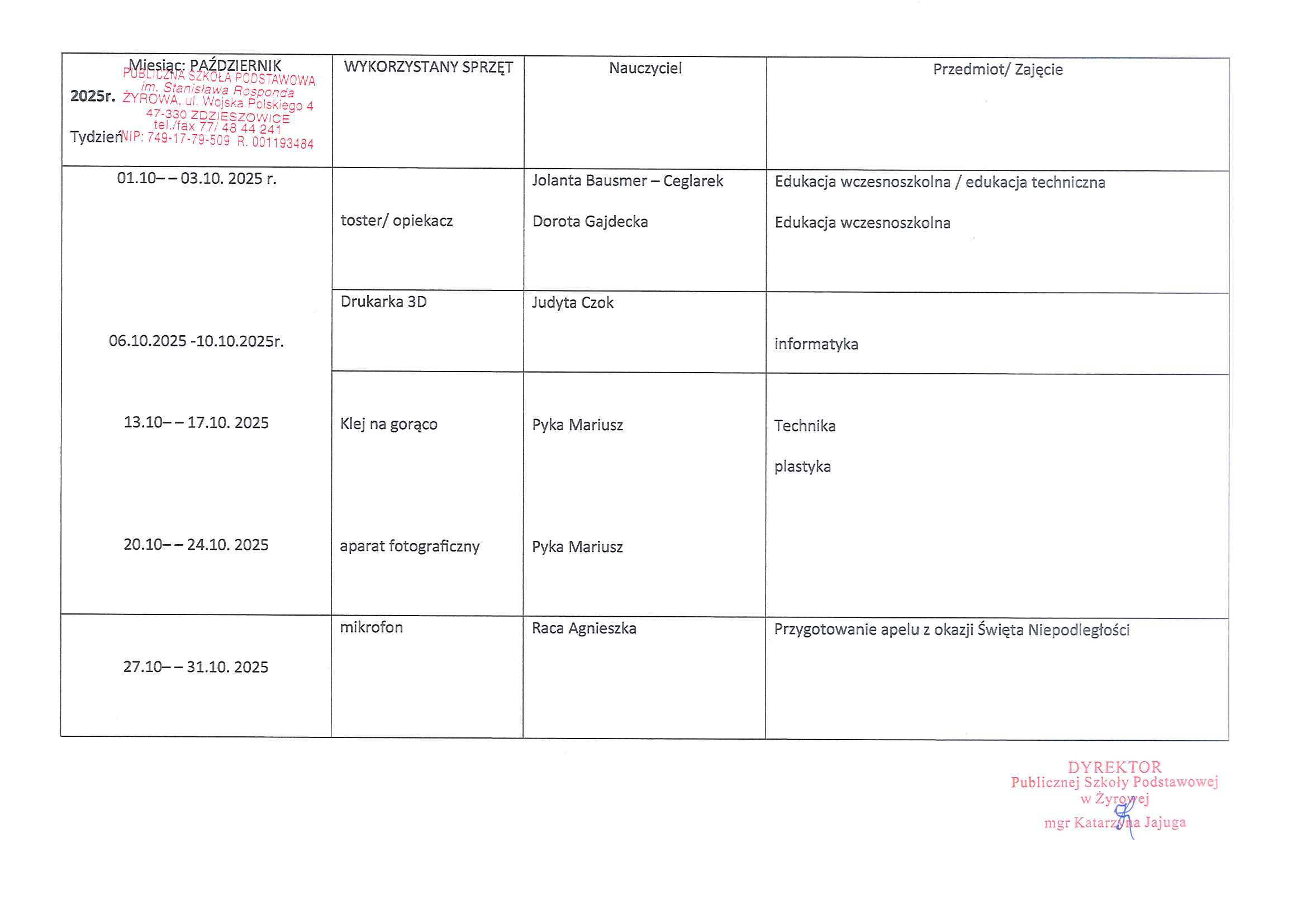 Rok szkolny 2025/2026 PAŹDZIERNIK – WYKORZYSTANIE SPRZĘTU – LABORATORIA PRZYSZŁOŚCI Opublikowano przez @PSP Żyrowa 2026-01-07 Data publikacji: 2025-10-29 laboratoria październikPobierz