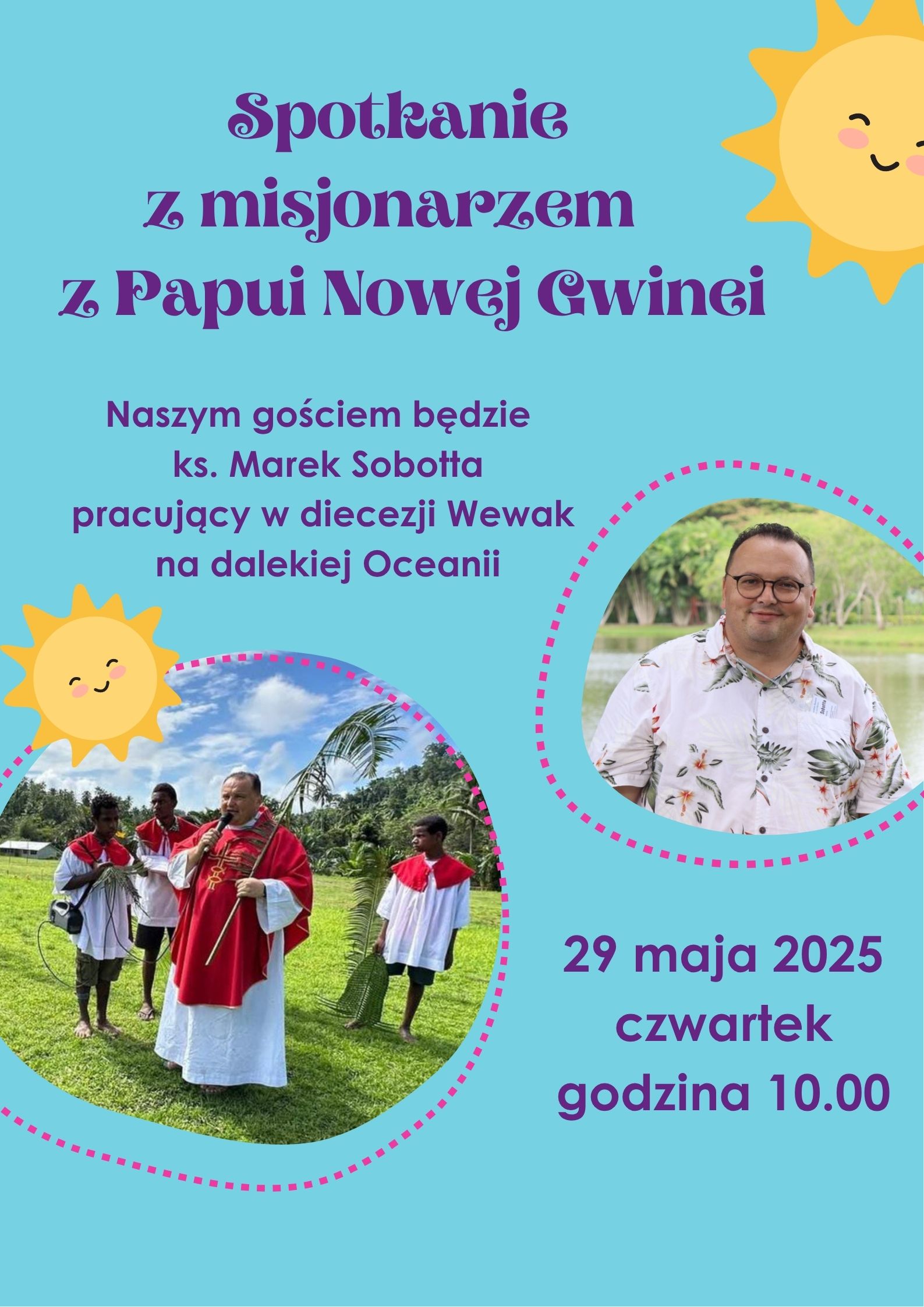 Aktualności uczniowskie SPOTKANIE Z MISJONARZEM Z PAPUI NOWEJ GWINEI – 29 maja 2025r. Opublikowano przez @PSP Żyrowa 2025-05-27 Data publikacji: 2025-05-27