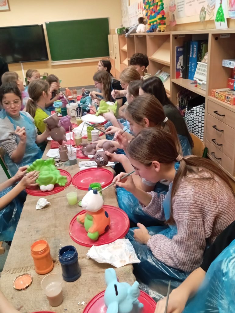 Drugi dzień warsztatów był poświęcony malowaniu naczyń, które zostały wykonane przez uczniów dzień wcześniej. Każdy uczestnik samodzielnie dekorował swoją pracę, wyrażając swoją kreatywność i artystyczną ekspresję. Zajęcia pozwoliły połączyć tradycyjne rzemiosło z nowoczesnym spojrzeniem na sztukę i własne inspiracje.
