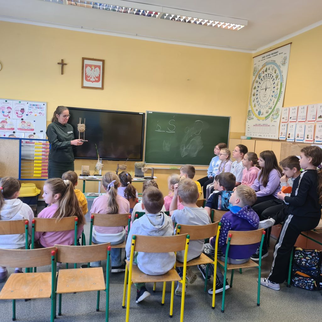 28 kwietnia 2026 roku uczniowie klas I – III wzięli udział w niezwykle ciekawych i inspirujących zajęciach przyrodniczych, prowadzonych przez panią Elżbietę Kuźnicką – pracownicę Parku Krajobrazowego Góra Świętej Anny, a także Mamą dwóch uczniów naszej szkoły. Tematem, który zaprezentowała pani Elżbieta były ” Mieszkania ptaków”. Uczniowie z zaangażowaniem uczestniczyli w zajęciach, wykazali się dość dobrą wiedzą dotyczącą ptaków. Było sympatycznie i bardzo przyjemnie.